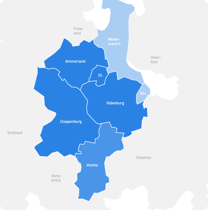 Ammerland, Cloppenburg, Stadt Oldenburg: